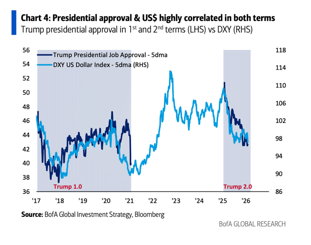 瞻望后续场合,好意思元的订价权正处于宏不雅货币计谋与国内务治信任度的交叉路口。尽管好意思联储在2026年中期仍有降息预期,但特朗普支捏率的走势将决定本钱流向的捏久性。